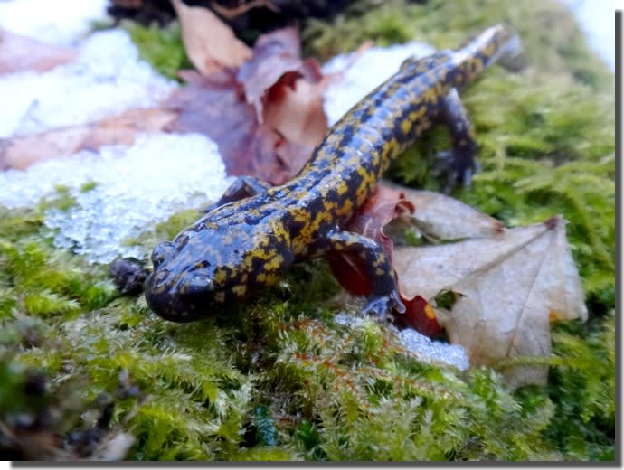 雪の積もる山を越え、県をまたいでのサンショウウオ探しとは、