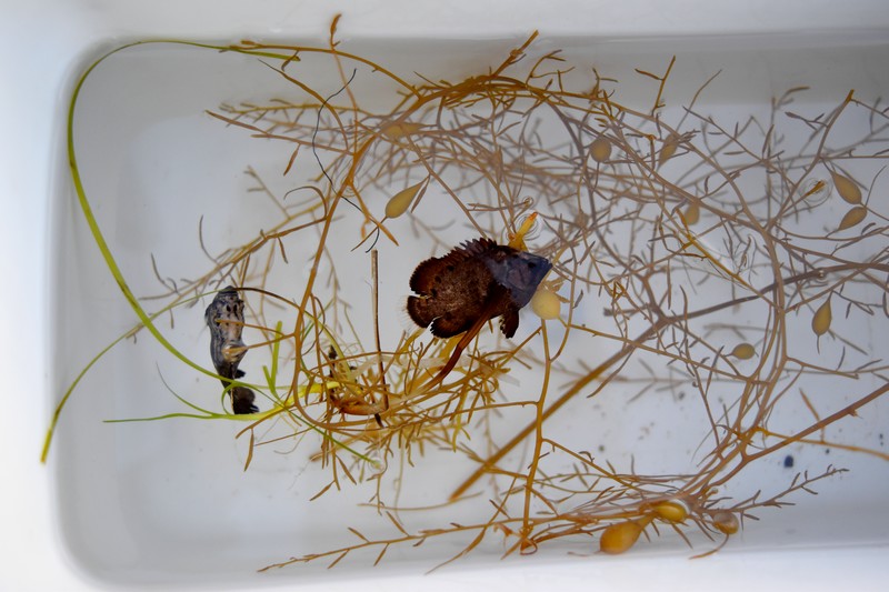ひと悶着の後、網に残った藻の中にまたしても。
