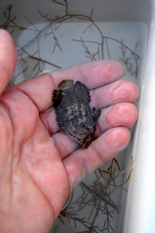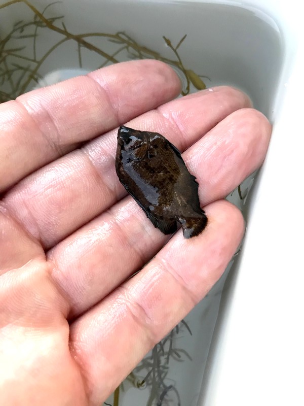 流れ藻の上でフワフワと泳いでいたところを捕獲。