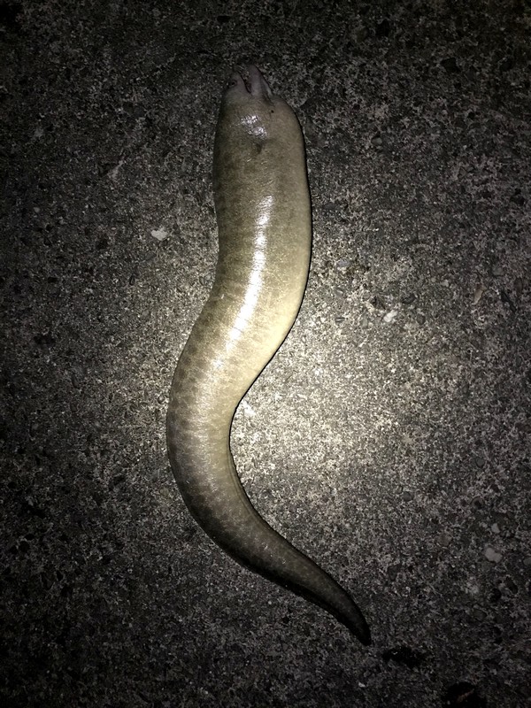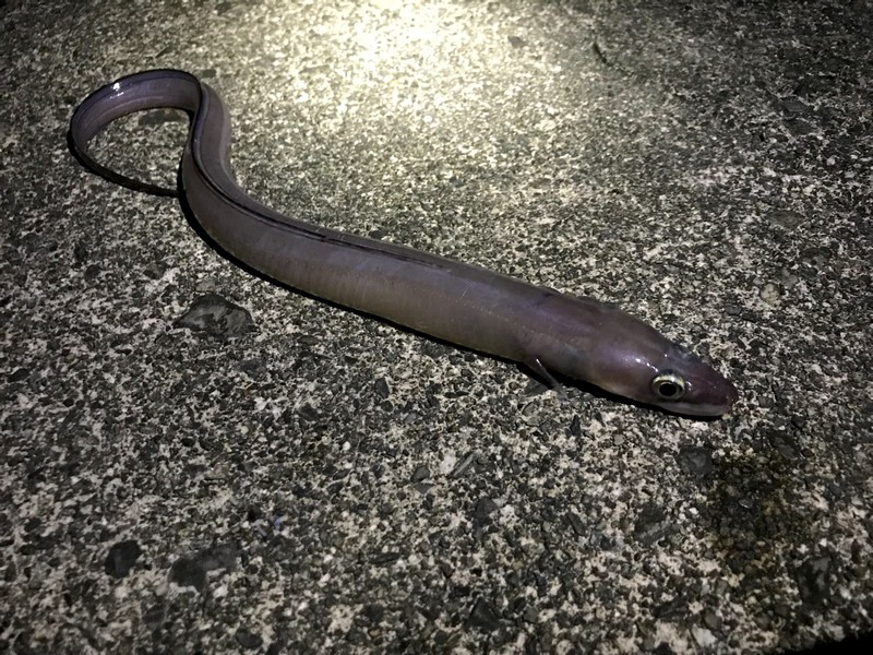 また仕掛けを作り直すのか...と考えていたら上がってきたクロアナゴ。