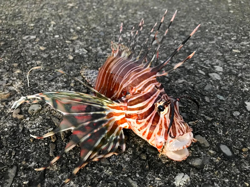 ちょっと大きいようで真剣にやり取りすると上がってきたのはなんとミノカサゴ!!!