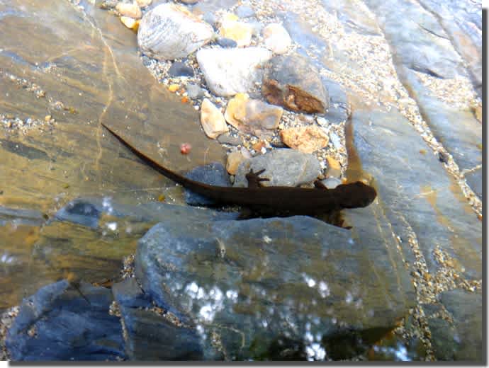 比較的車から近い滝下の沢を探ってみると、なぜかウナギ。