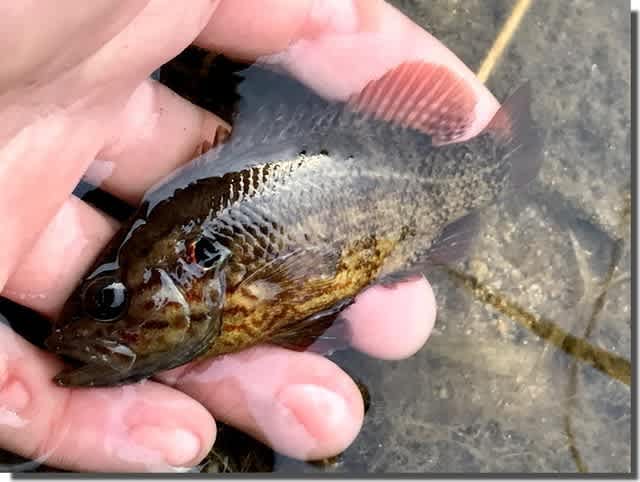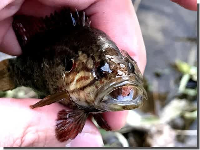 そっと水中に放すと脇目もふらずボサ下へ逃げていく。