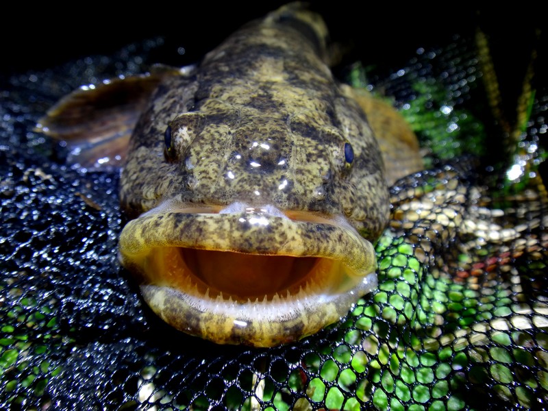 口の大きさと歯の鋭さが相まってアンコウみたい。