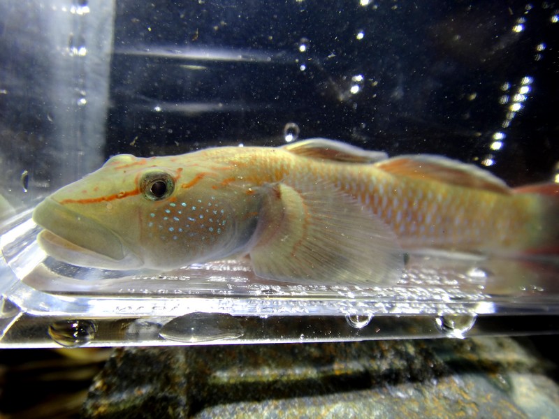 ヨシノボリとしては大型で頬に瑠璃色の斑点があるのが特徴。